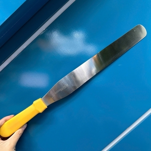 Lưỡi dài 12 inch: Cho phép phủ và láng toàn bộ bề mặt bánh chỉ trong một đến hai lần kéo - hiệu quả vượt trội so với dao ngắn.